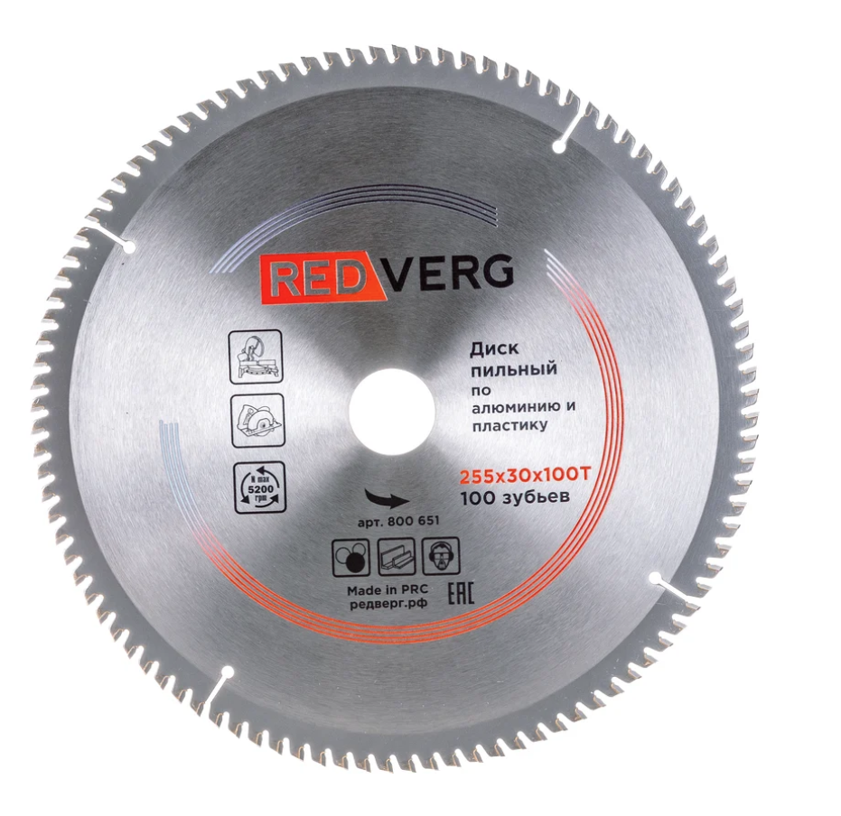 Диск пильный по алюминию и пластику 255х30мм. REDVERG,100 зуб.