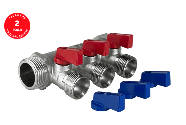 Коллектор имеет 2 или 3 выхода с наружной резьбой диаметром 1/2 .
