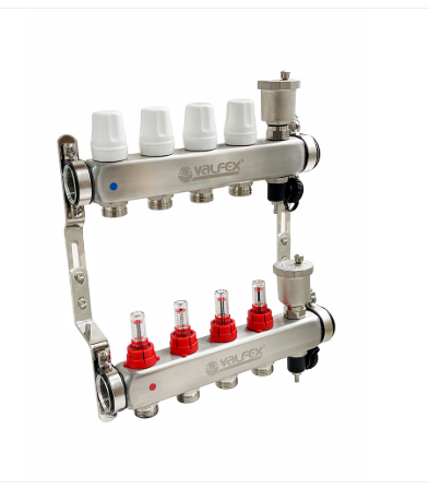 Коллекторная группа из нержавеющей стали со встроенными расходомерами и регулирующими клапанами ТМ VALFEX – позволяет производить балансировку петель при включенном циркуляционном насосе с помощью настроечных клапанов без фиксации, с расходомерами. В комплекте имеются автоматические воздухоотводчики, позволяющие удалять из системы накопление воздуха и газов.