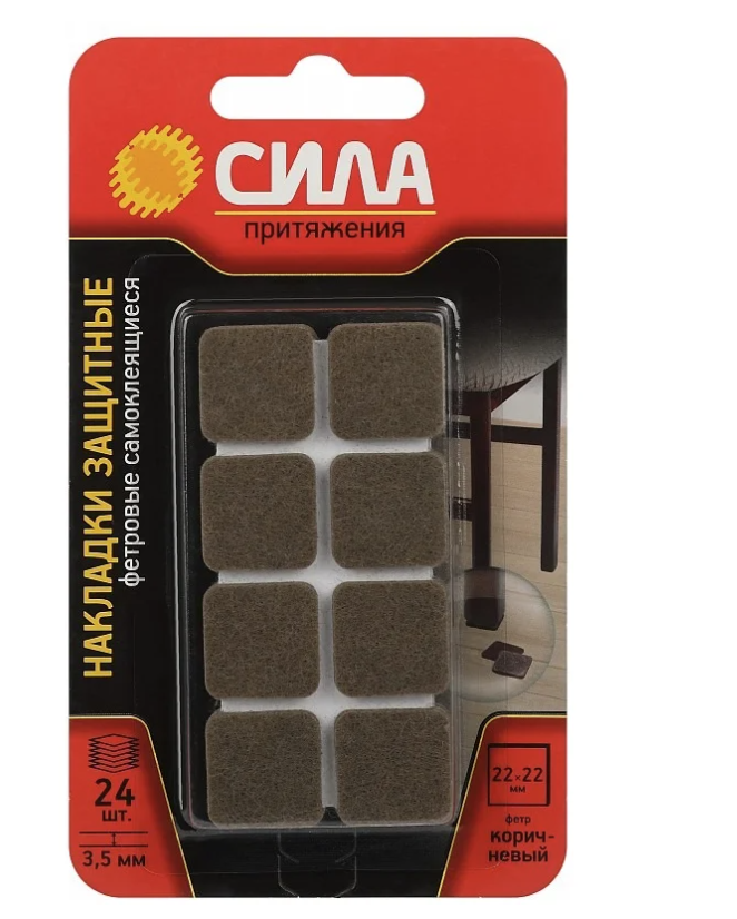 Накладки СИЛА SFELT-22х22 защитные фетровые самоклеящиеся квадратные 22х22 мм 24 шт.