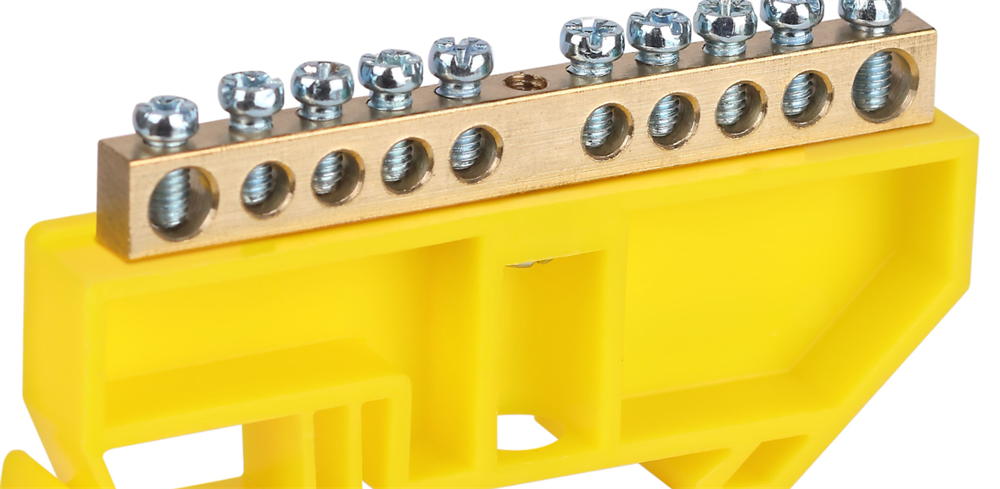 Описание: Шины латунные PE «земля» 6×9 на DIN-изоляторе применяются для электрического и механического соединения нулевых, защитных и фазных проводников в электрических щитах и распределительных устройствах. Изделия выполняются из латуни соответствующего сечения с отверстиями, обладающими винтовыми зажимами для подключения проводников. Шины установлены на пластиковый изолятор, изготовленный из полипропилена с добавлением антипиренов. Конструкция изолятора обладает креплением для установки на DIN-рейку. Цвет изолятора (синий/жёлтый) позволяет быстро и правильно идентифицировать тип подключаемого проводника.