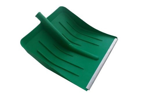Снеговая лопата МЕТЕЛЬ №1 ЦВЕТНАЯ пластмассовая с оц.планкой 380х365мм,ф32 с д/ч и V-ручкой
